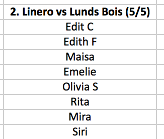 Här kommer laget inför söndagens match mot Lunds Bois. Samling 09:20 på Linero IP ombytta och klara. Tröjor fås på plats. Matchstart kl 10:00. Notera att ett par tjejer tyvärr får vila och istället spela nästa helg mot Uppåkra.